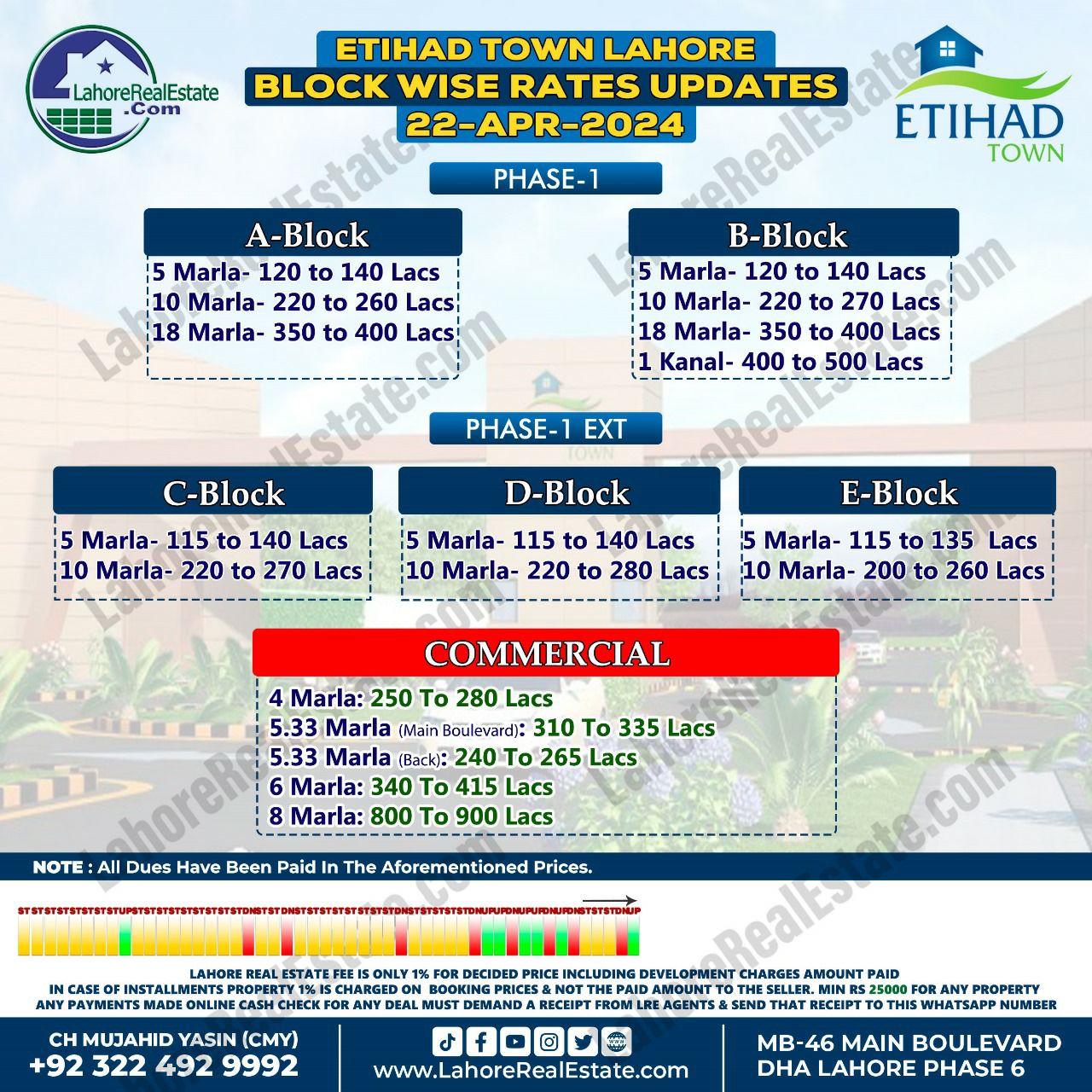 Etihad Town Lahore Plot Prices Blockwise Rates 22nd April 2024