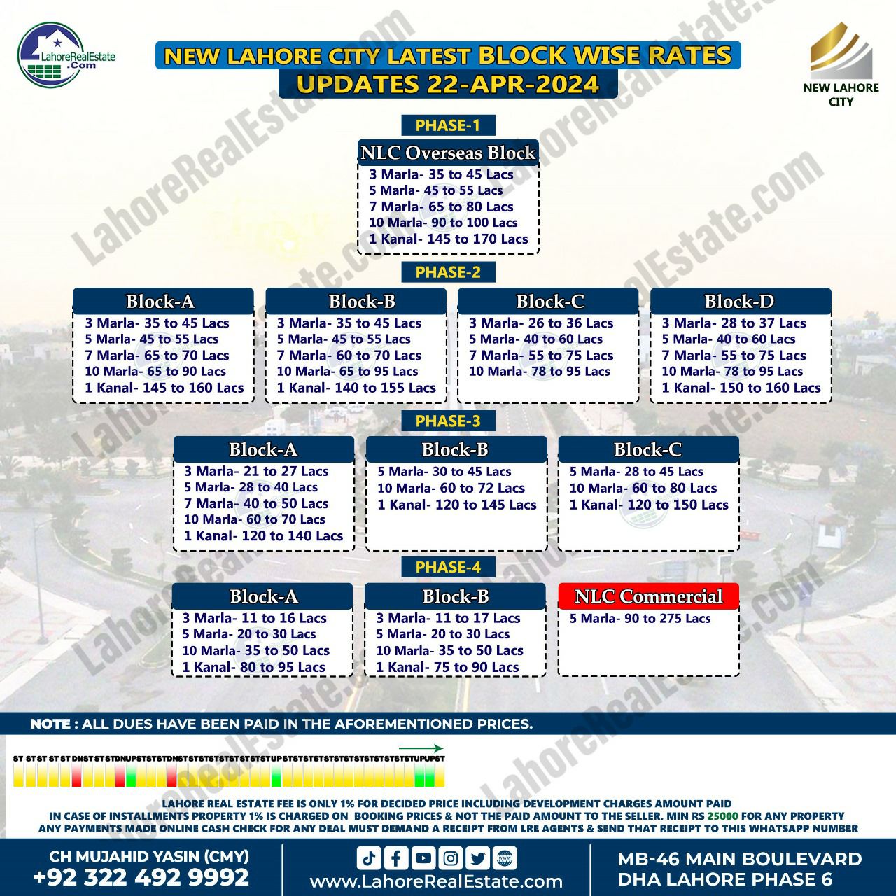 New Lahore City Plot Prices Blockwise Rates 22nd April 2024