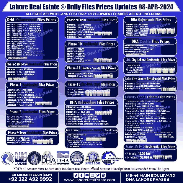 Keywords: Lahore Real Estate, File Rates, Market Update, DHA Lahore, Property Investment, Lahore Property Prices, DHA Lahore Phase Prices, DHA Lahore Commercial, DHA Residential