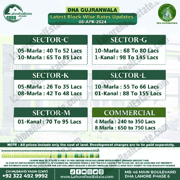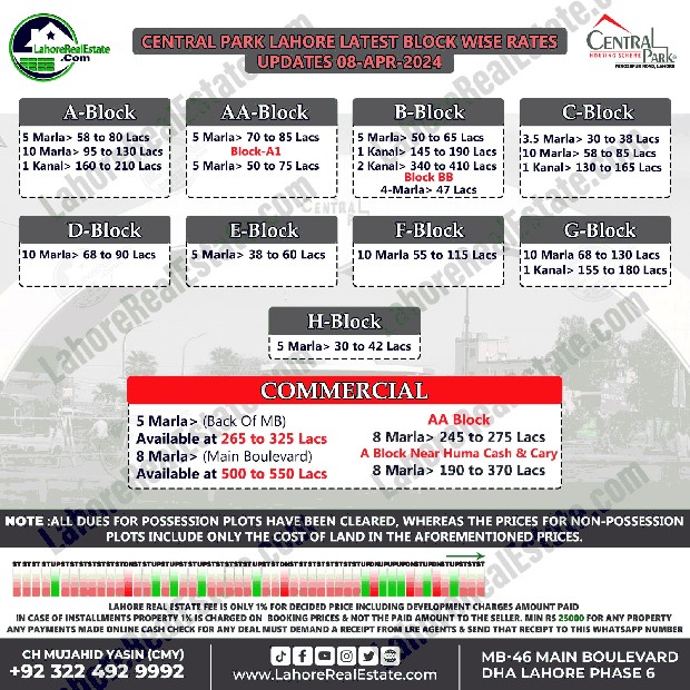 Disclaimer: This update reflects the current market status as of April 08, 2024. File rates can fluctuate. We recommend consulting with Lahore Real Estate ® for the most recent information and expert guidance tailored to your specific investment goals.