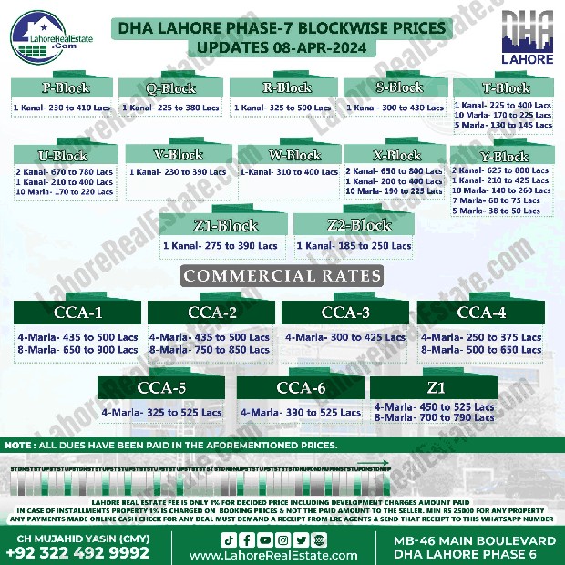 DHA Lahore Phase 7 File Rates Update