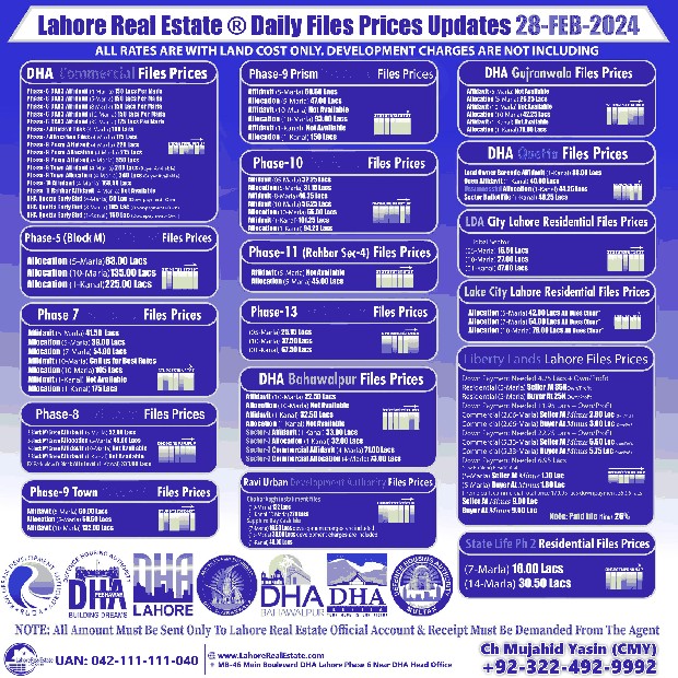 Market Pulse & Files Rates Update By Lahore Real Estate 28 February, 2024