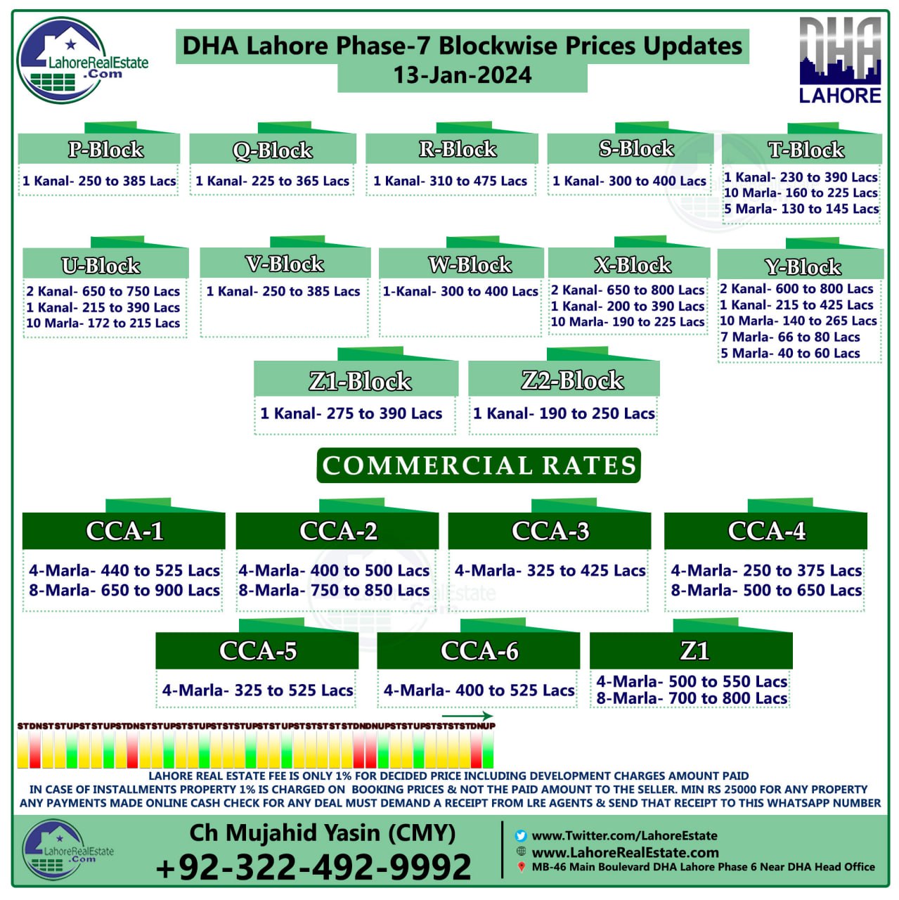DHA Lahore Phase 7 Plot Prices Blockwise Rates 15th January 2024