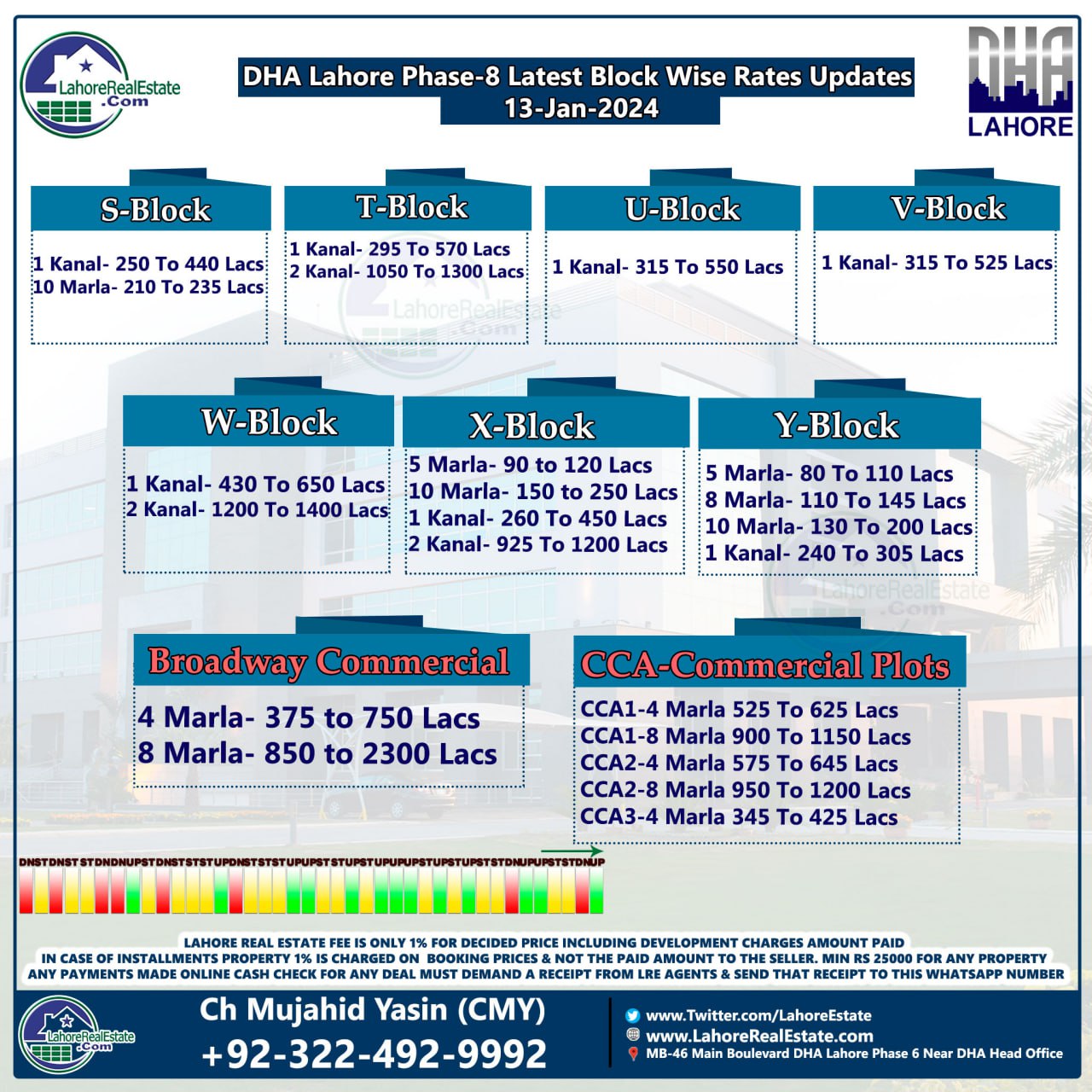 DHA Lahore Phase 8 Plot Prices Blockwise Rates 15th January 2024