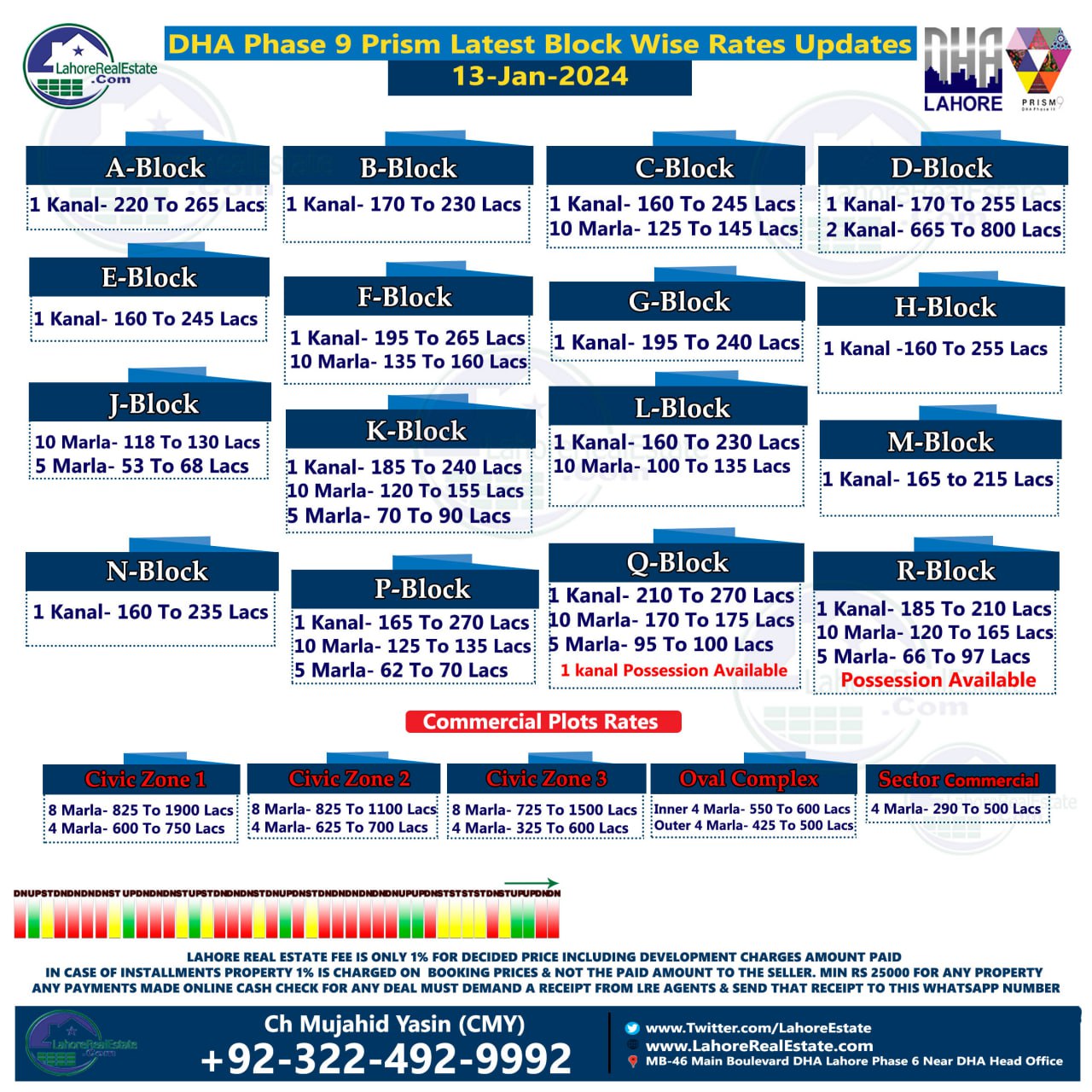 DHA Lahore Phase 9 Prism Plot Prices Blockwise Rates 15th January 2024