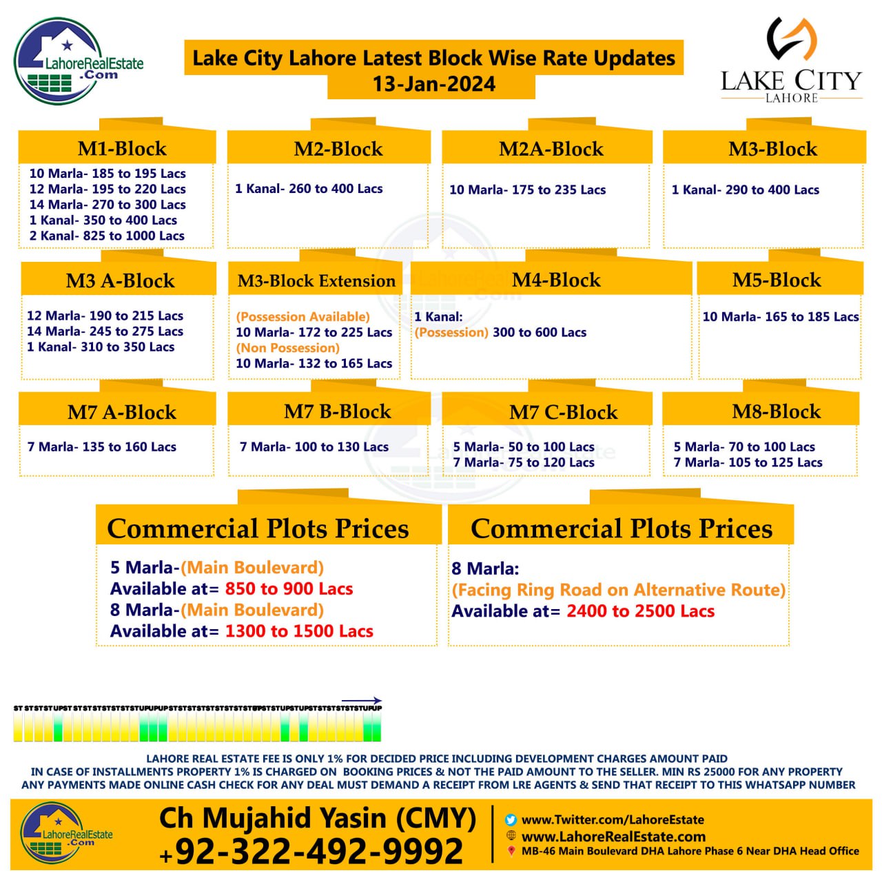Lake City Lahore Plot Prices Blockwise Rates 15th January 2024