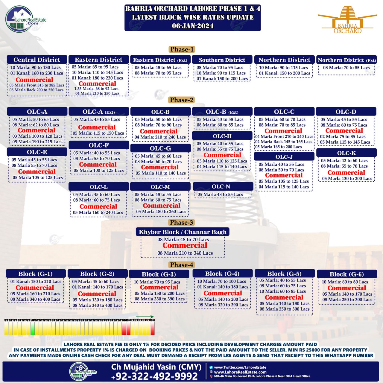 Bahria Orchard Lahore Plot Prices Blockwise Rates 8th January 2024