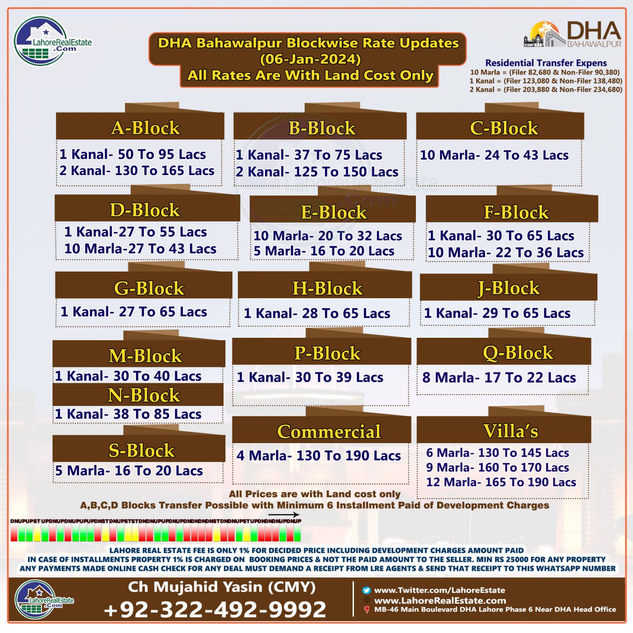 DHA Bahawalpur Plot Prices Blockwise Rates 8th January 2024