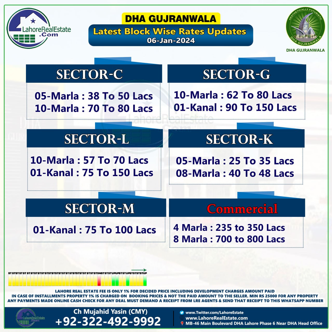 DHA Gujranwala Plot Prices Blockwise Rates 8th January 2024