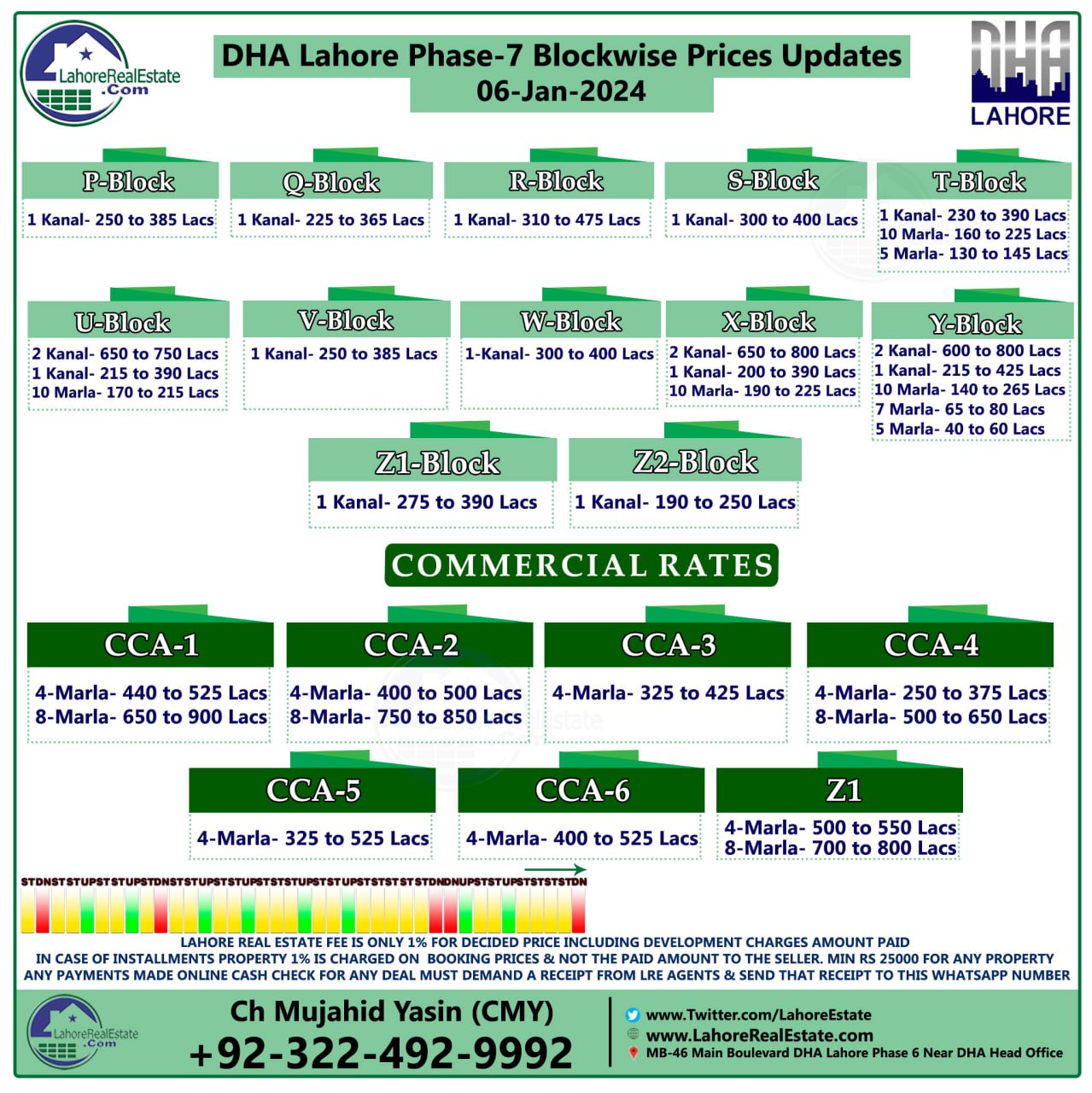 DHA Lahore Phase 7 Plot Prices Blockwise Rates 8th January 2024