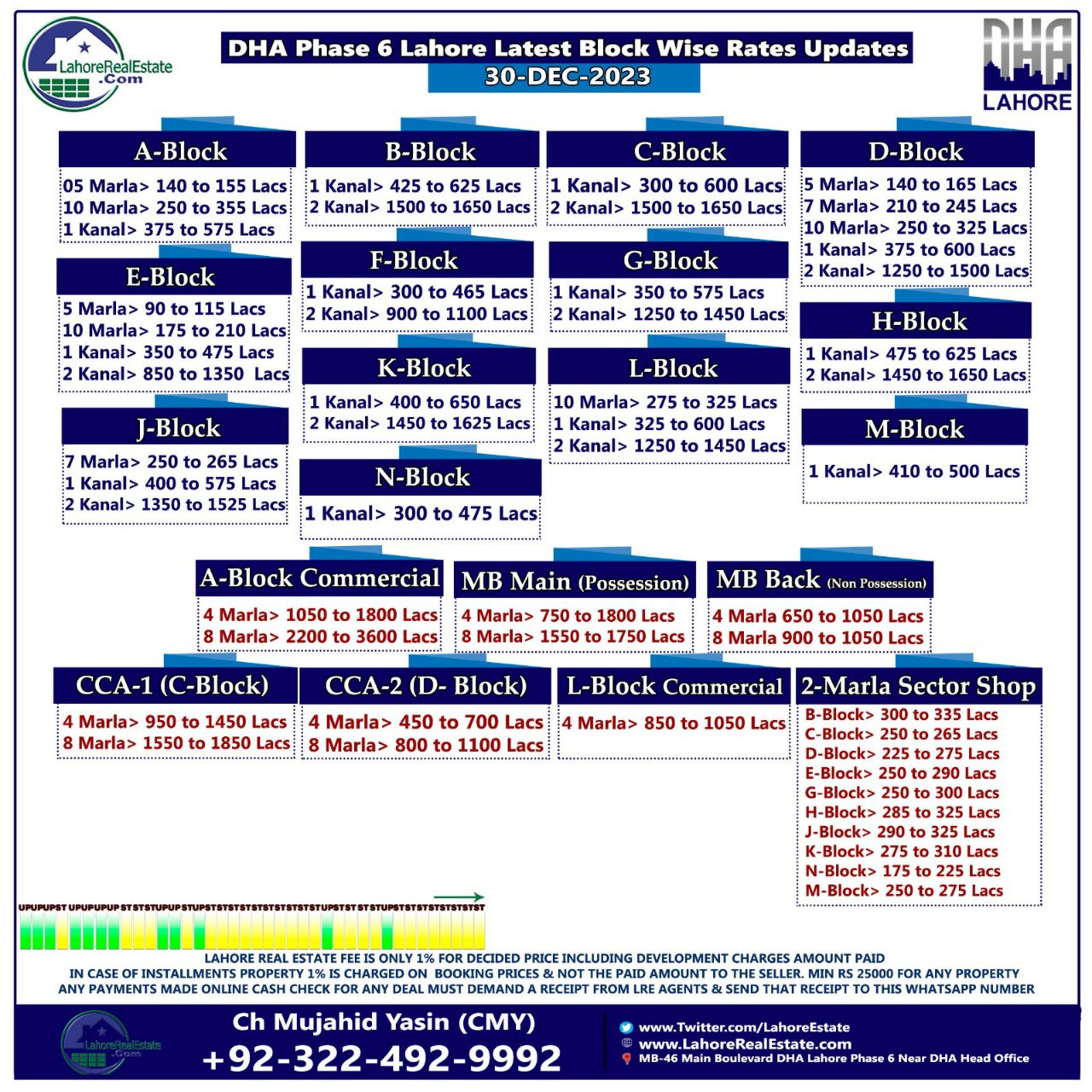 DHA Lahore Phase 6 Plot Prices Blockwise Rates 1st January 2024