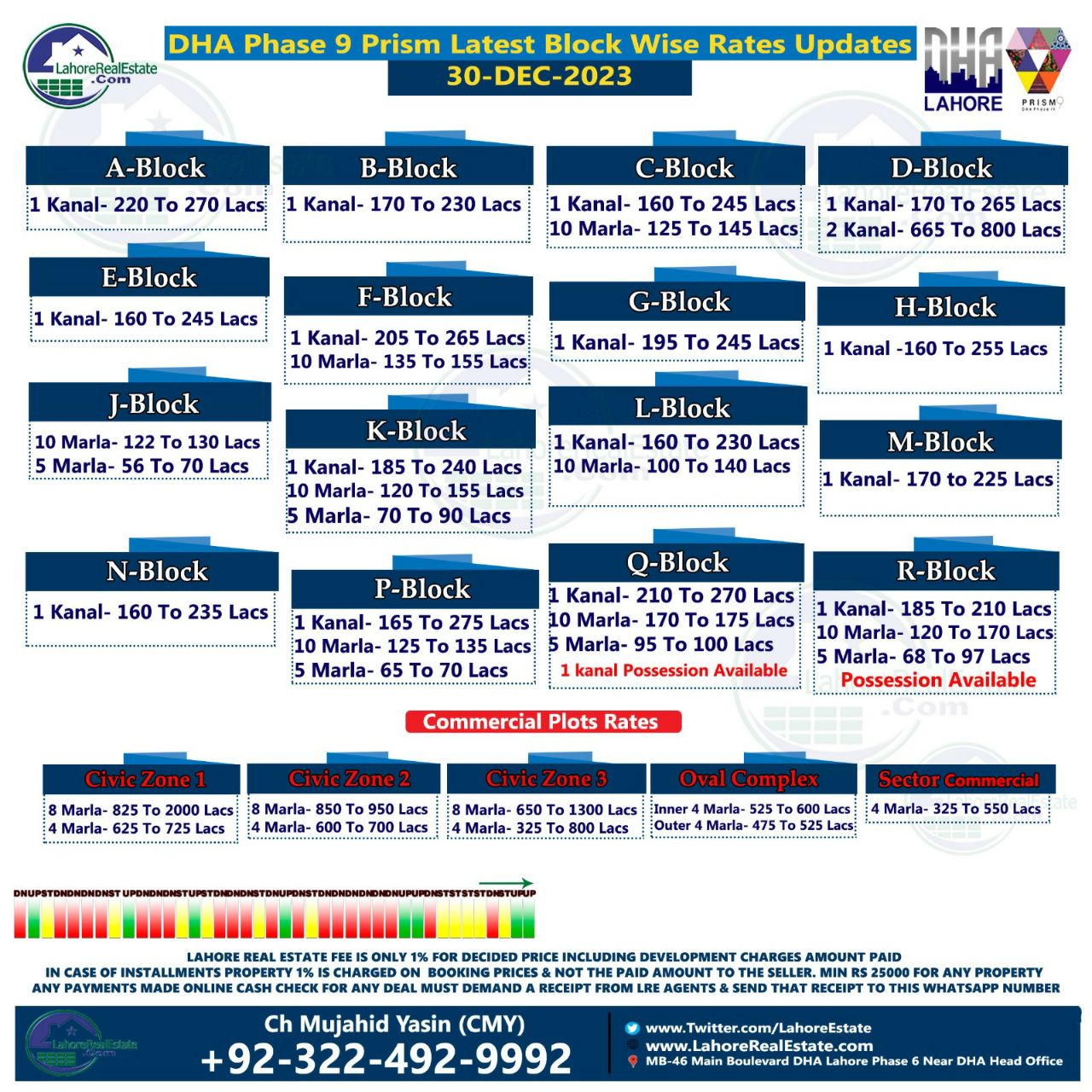 DHA Lahore Phase 9 Prism Plot Prices Blockwise Rates 1st January 2024