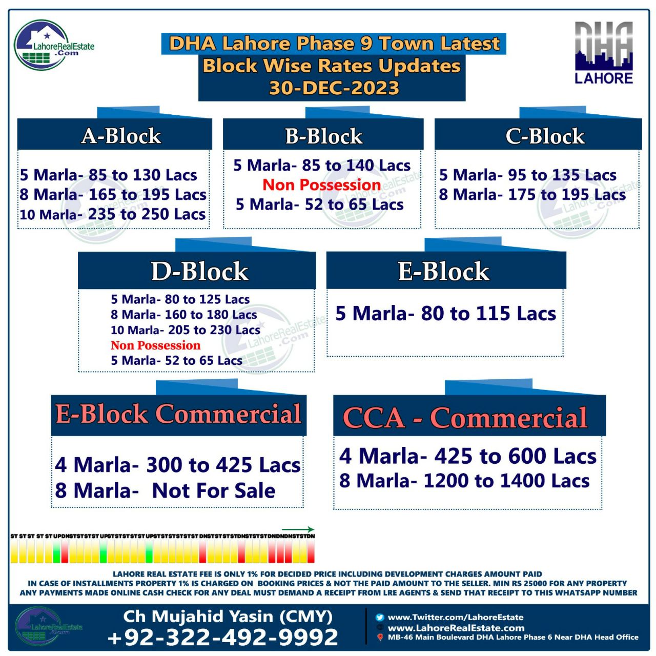 DHA Lahore Phase 9 Town Plot Prices Blockwise Rates 1st January 2024