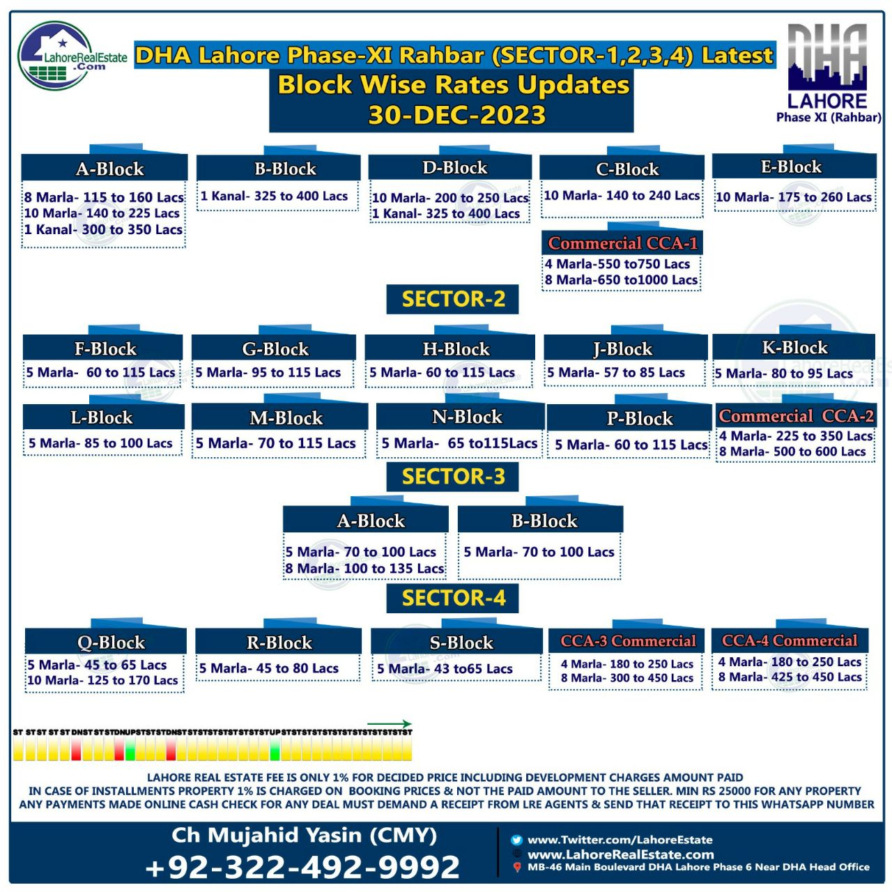 DHA Rahbar Sector 1 2 3 4 Plot Prices Blockwise Rates 1st January 2024