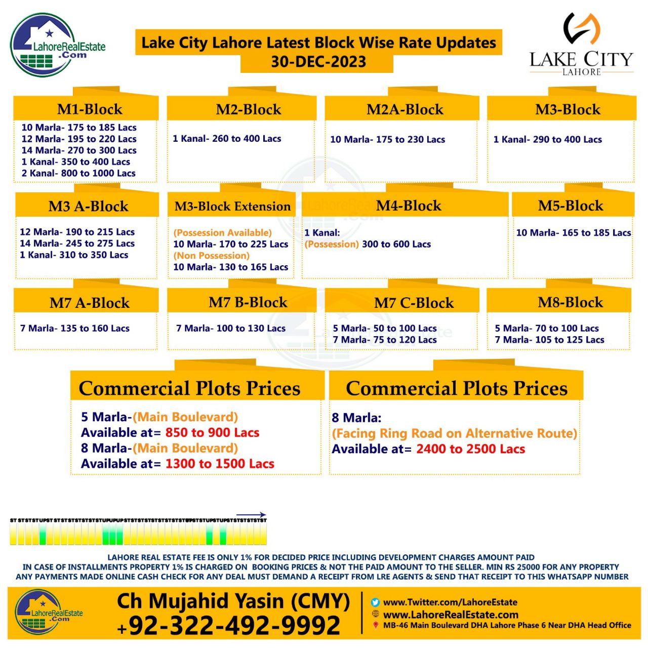 Lake City Lahore Plot Prices Blockwise Rates 1st January 2024