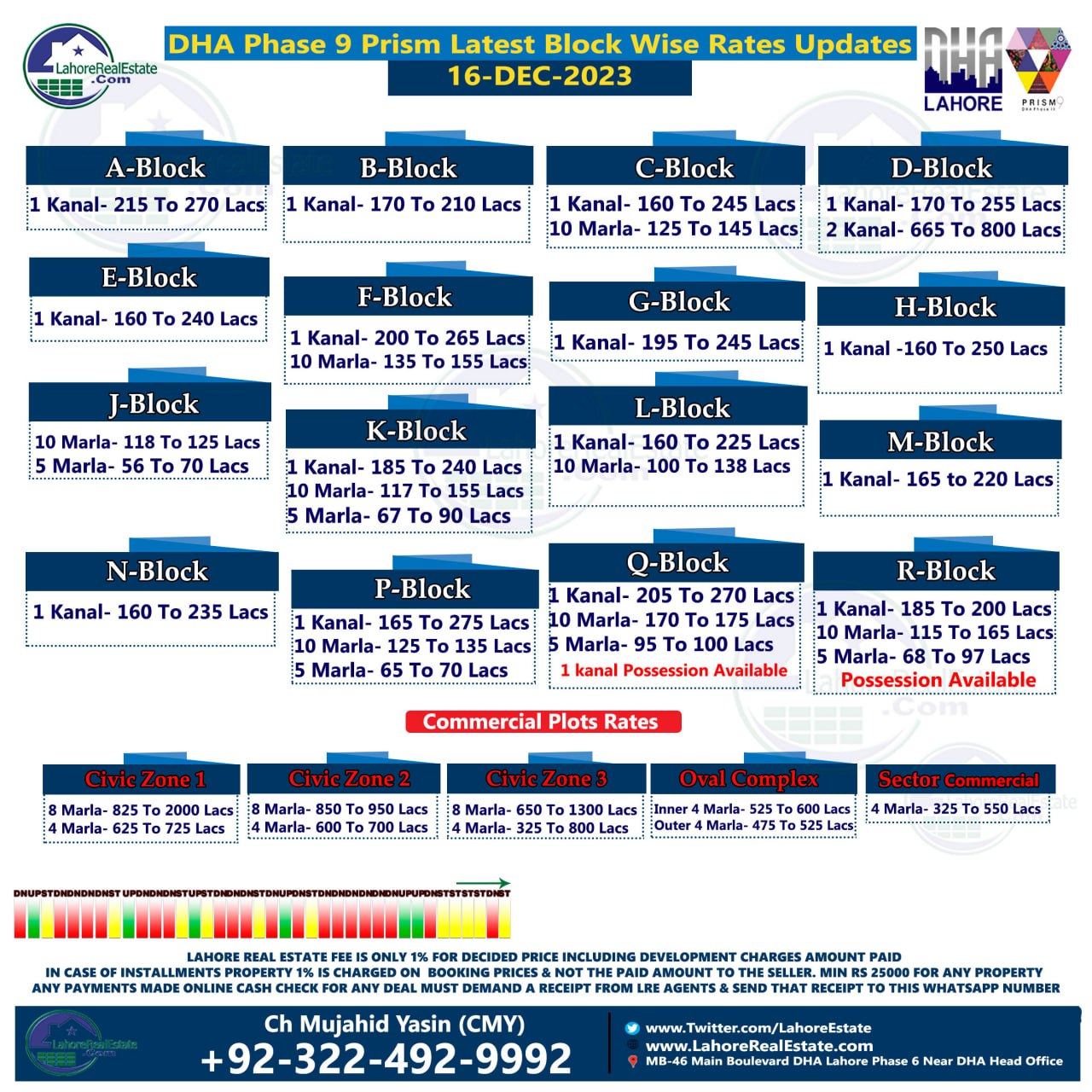 DHA Lahore Phase 9 Prism Plot Prices Blockwise Rates 18 December 2023