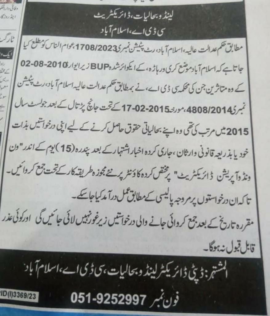 DHA Bahawalpur Land Allocation (10-Marla) Not Available