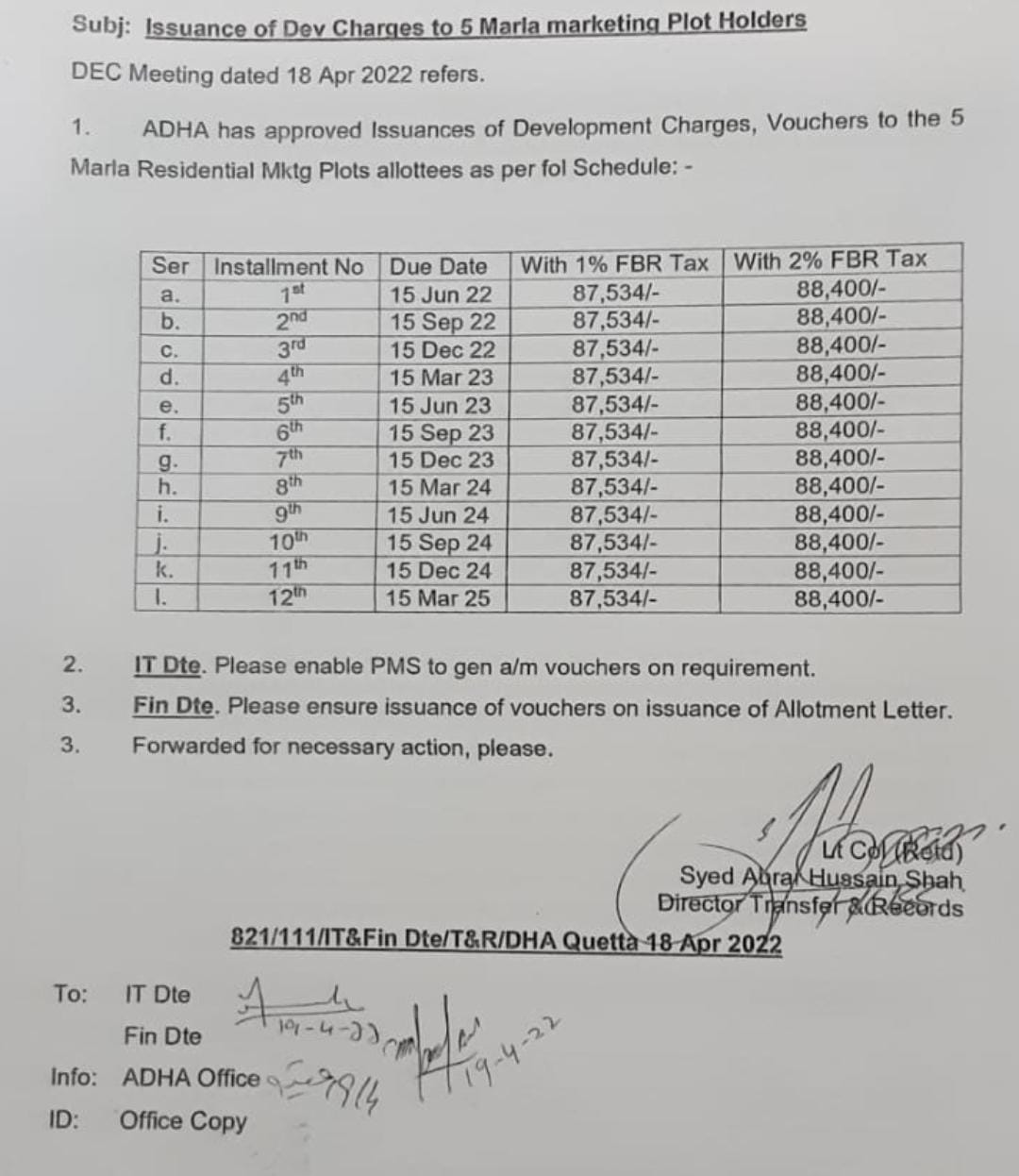 DHA Quetta Unsuccessful Allocation (1-Kanal) 47.25 Lacs