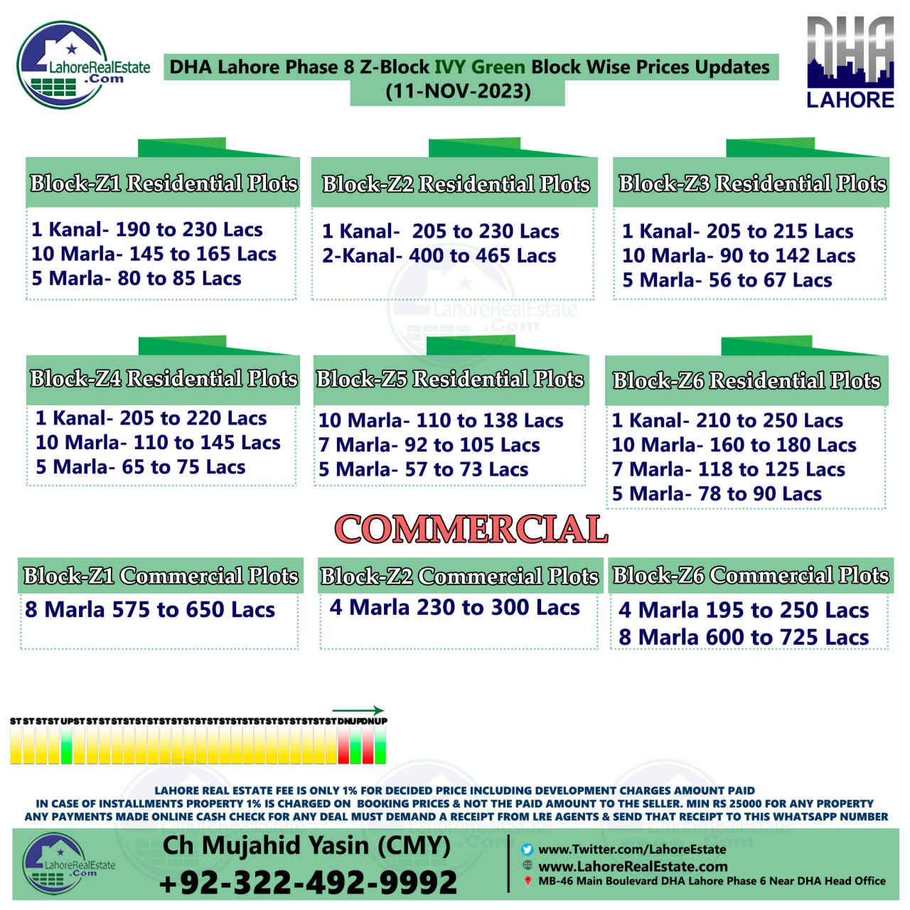 DHA Lahore Phase 8 IVY Green Plot Prices Blockwise Rates 13 November 2023