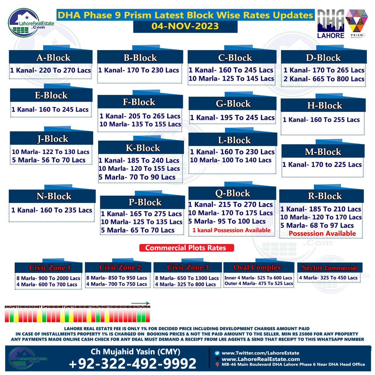 DHA Lahore Phase 9 Prism Plot Prices Blockwise Rates 6th November 2023