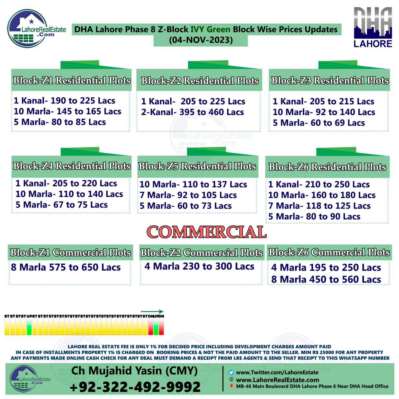 DHA Lahore Phase 8 IVY Green Plot Prices Blockwise Rates 6th November 2023