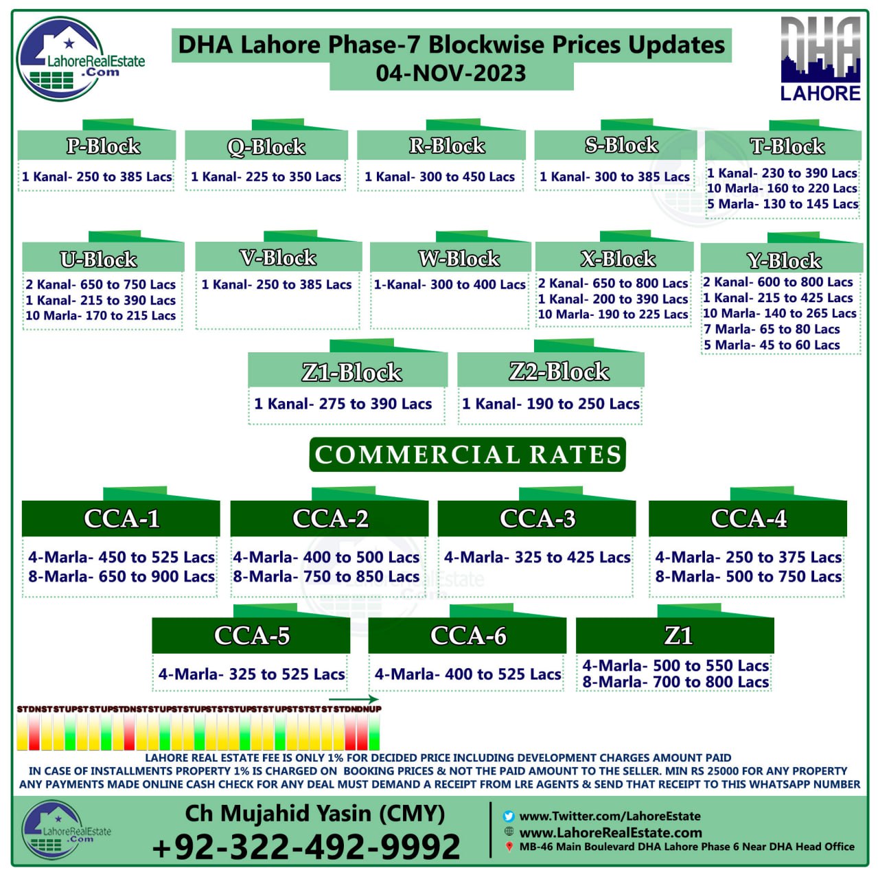 DHA Lahore Phase 7 Plot Prices Blockwise Rates 6th November 2023