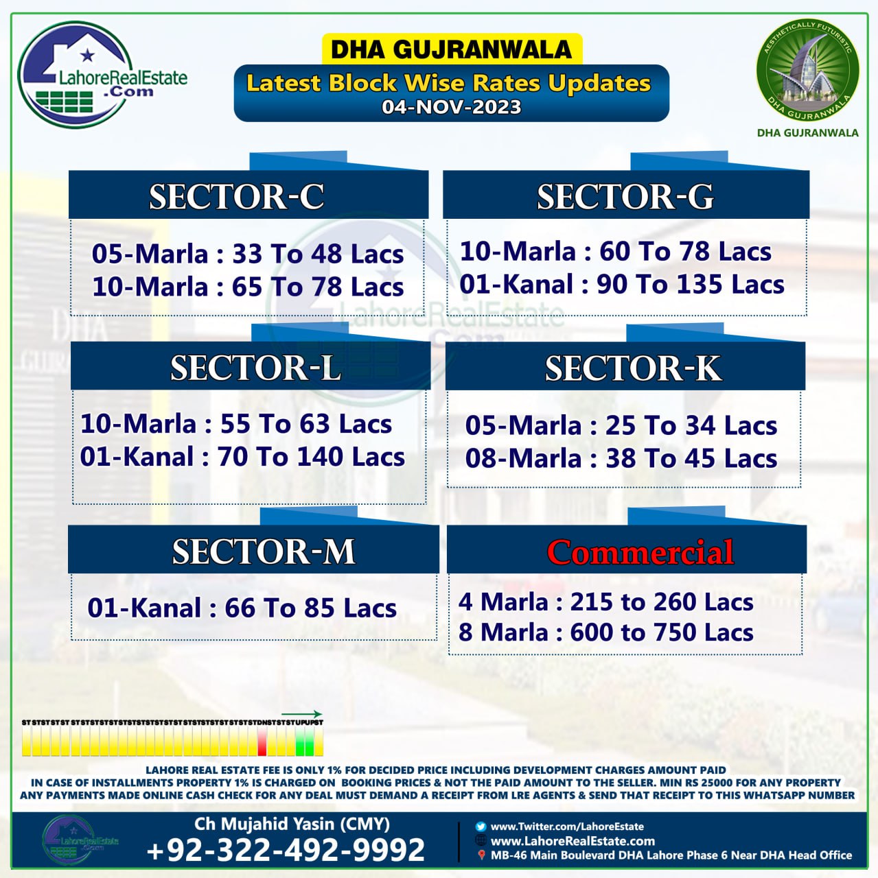 DHA Gujranwala Plot Prices Blockwise Rates 6th November 2023
