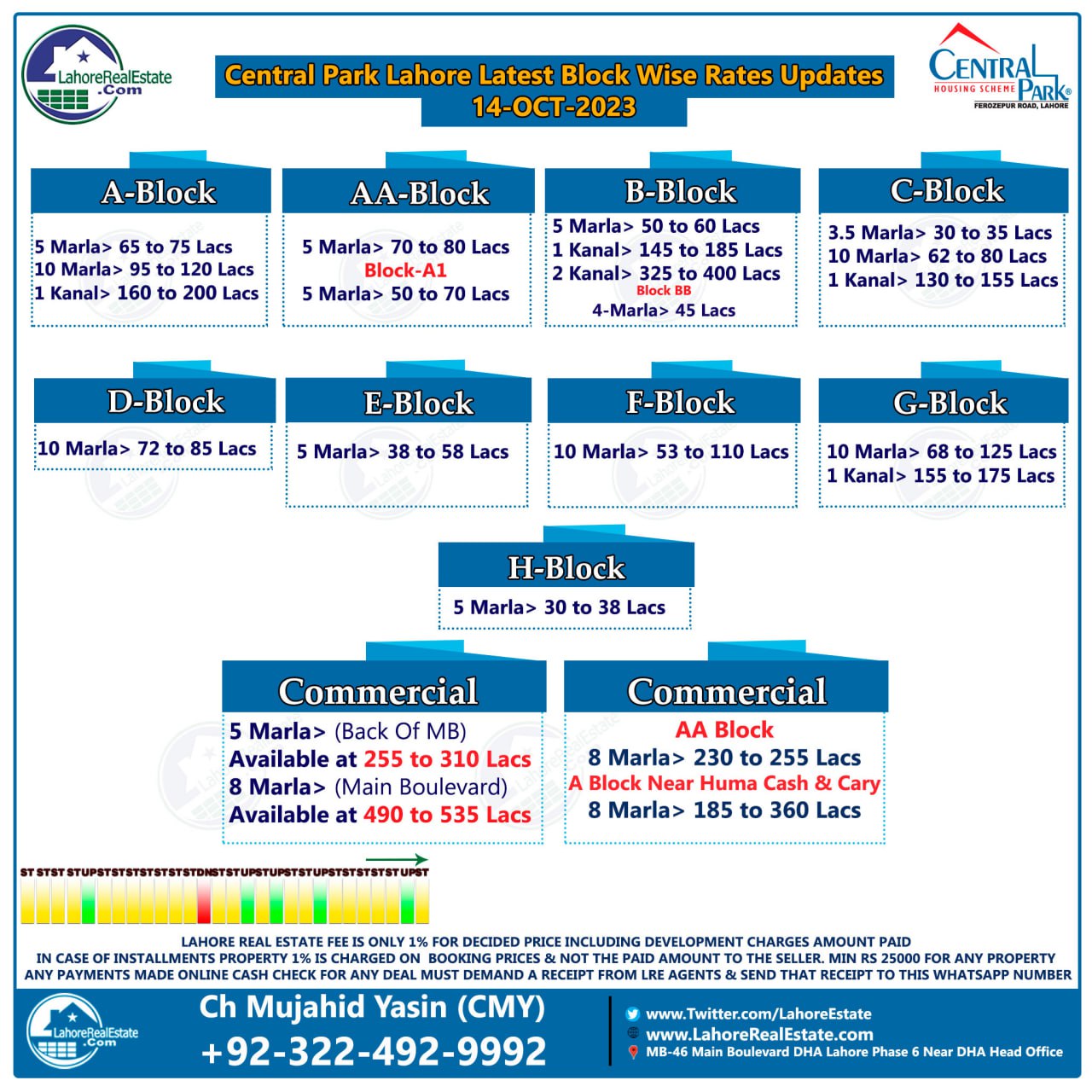 Central Park Lahore Plot Prices Blockwise Rates 16th October 2023