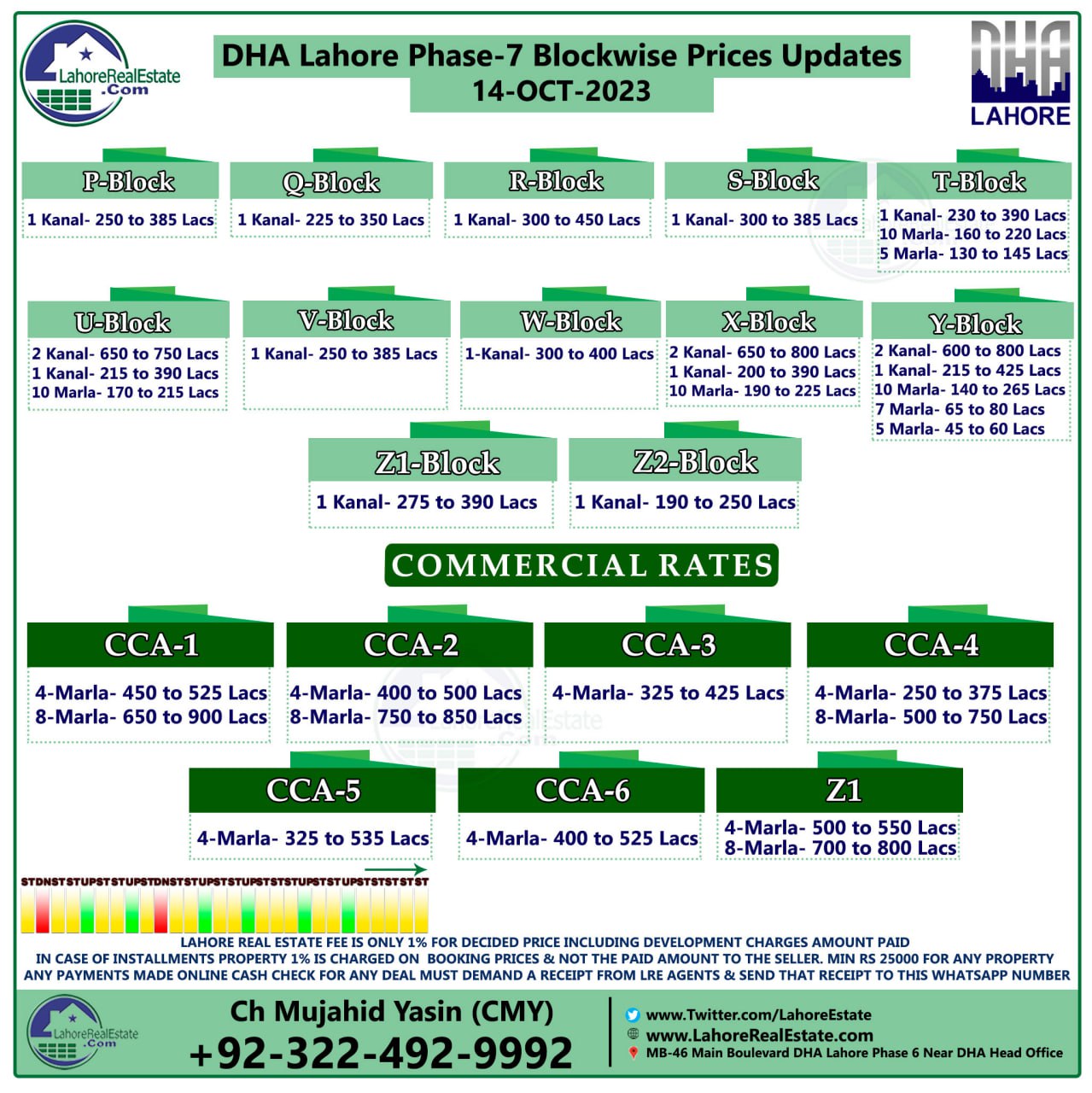 DHA Lahore Phase 7 Plot Prices Blockwise Rates 16th October 2023
