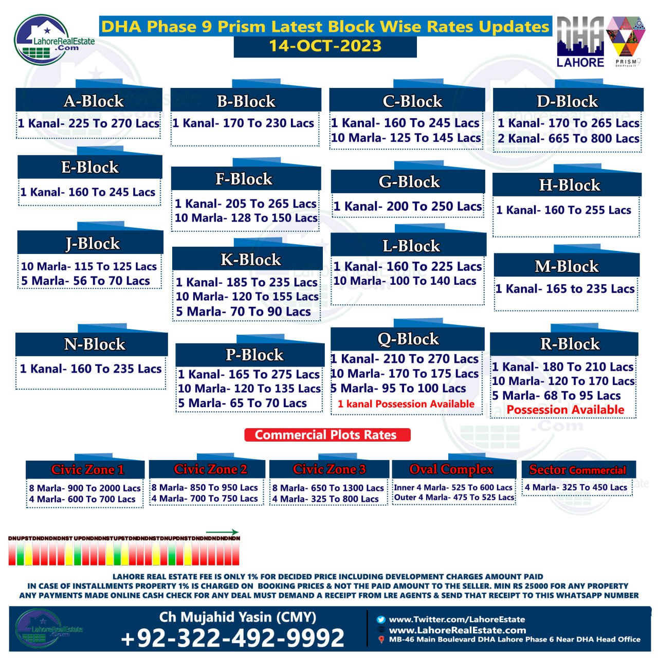 DHA Lahore Phase 9 Prism Plot Prices Blockwise Rates 16th October 2023