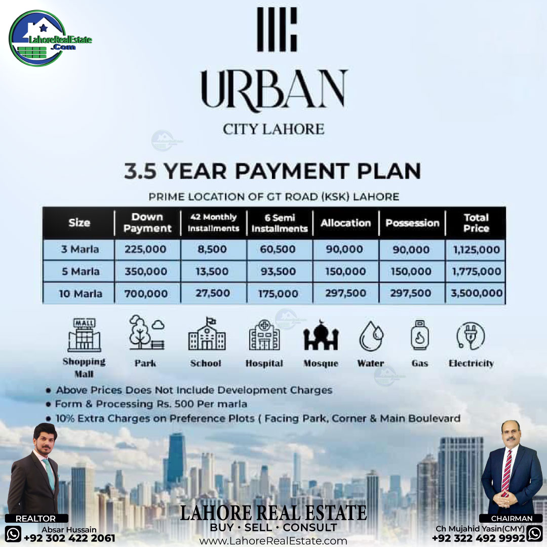 Urban City Lahore 3.5 Years Payment Plan