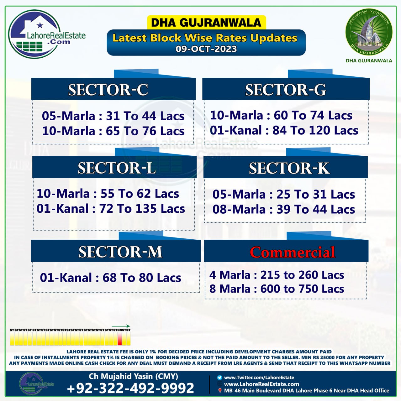 DHA Gujranwala Plot Prices Blockwise Rates 9th October 2023