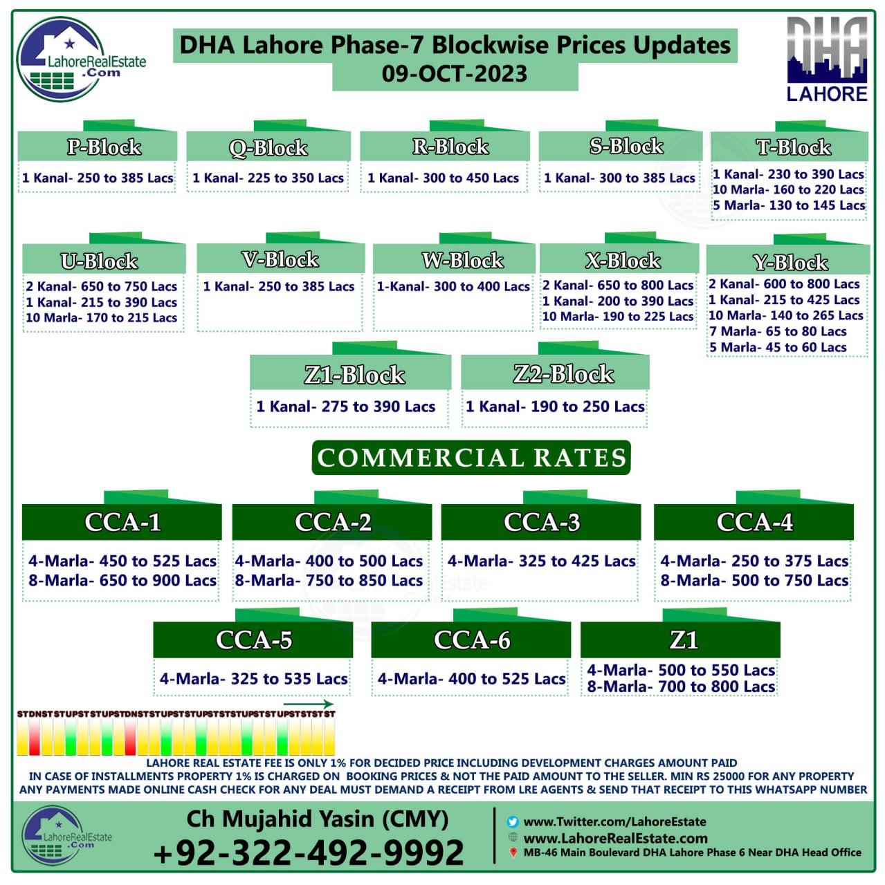 DHA Lahore Phase 7 Plot Prices Blockwise Rates 9th October 2023