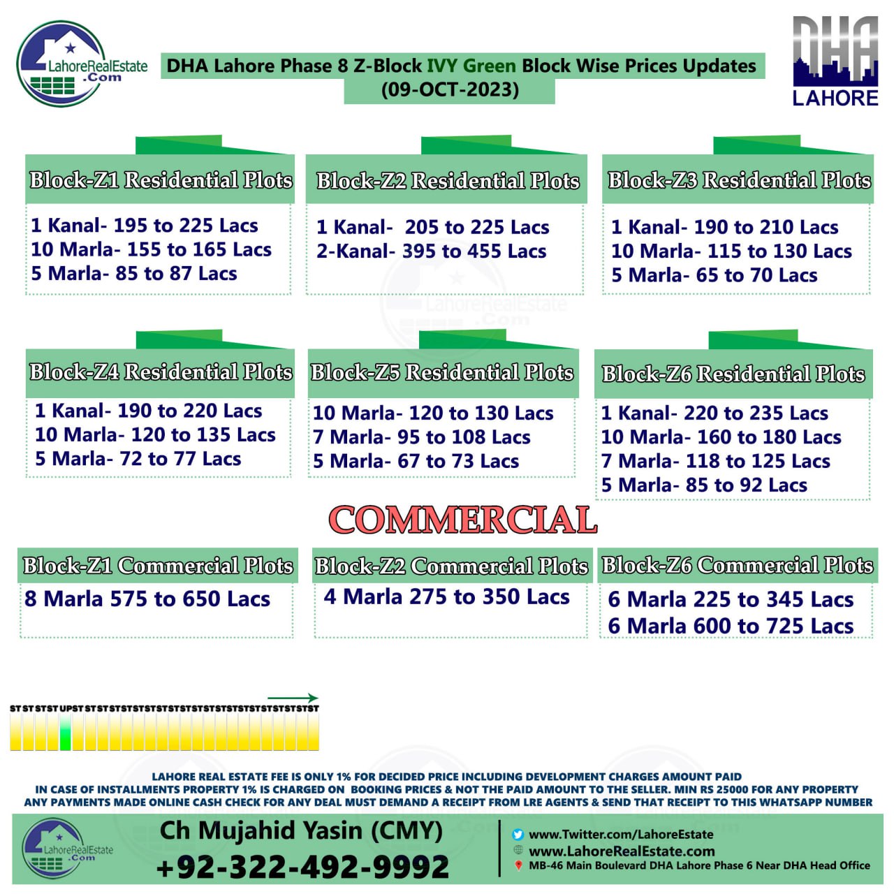 DHA Lahore Phase 8 IVY Green Plot Prices Blockwise Rates 9th October 2023