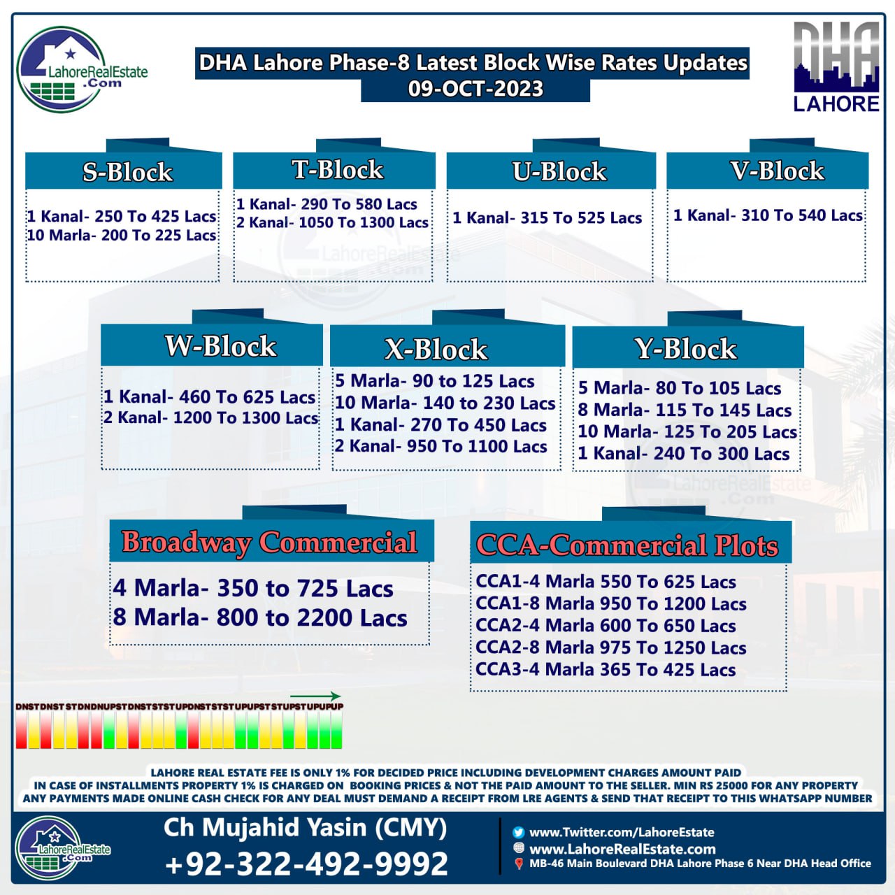 DHA Lahore Phase 8 Plot Prices Blockwise Rates 9th October 2023