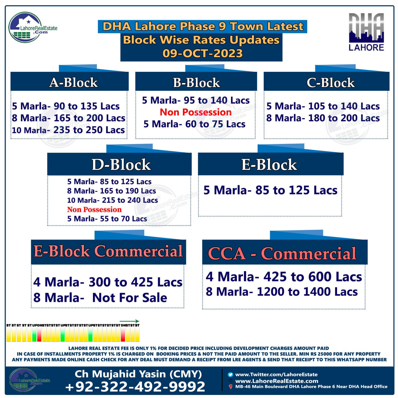 DHA Lahore Phase 9 Town Plot Prices Blockwise Rates 9th October 2023