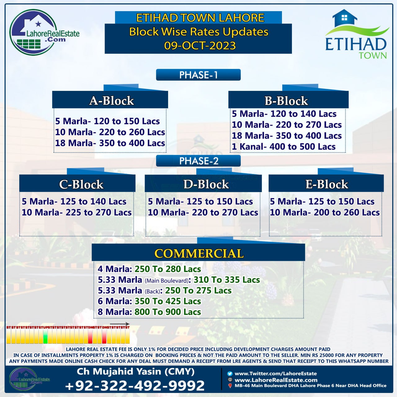 Etihad Town Lahore Plot Prices Blockwise Rates 9th October 2023
