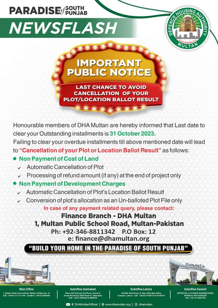 DHA Multan Land Allocation (01-Kanal) 55.00 Lacs
