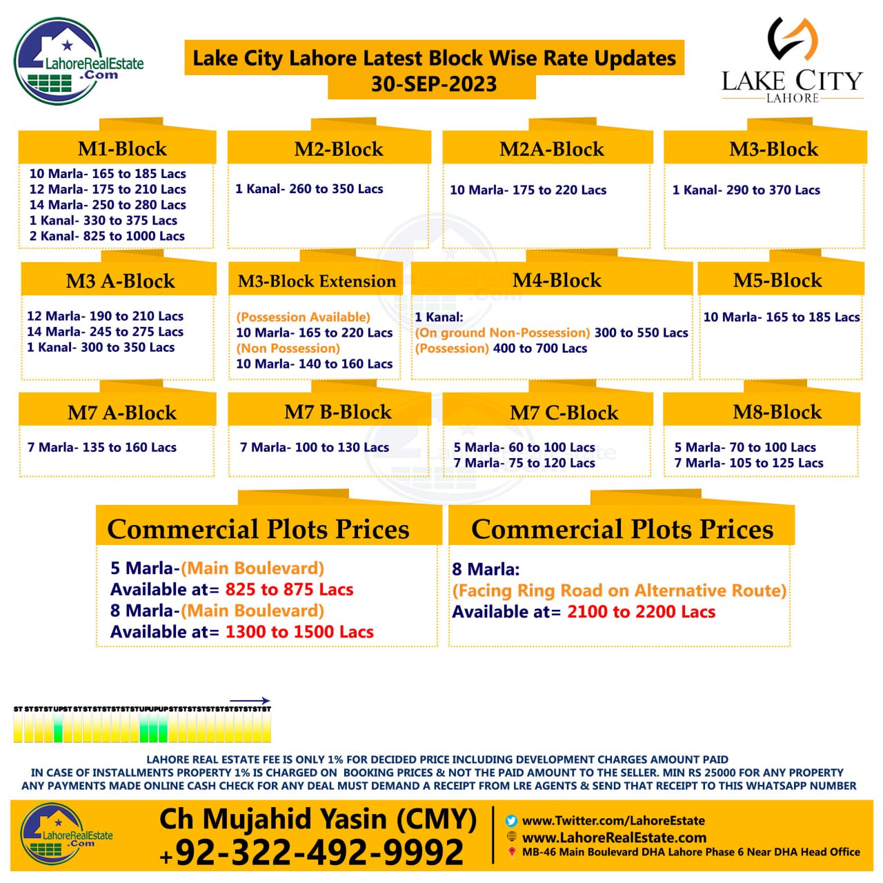 Lake City Lahore Plot Prices Blockwise Rates 30th September 2023