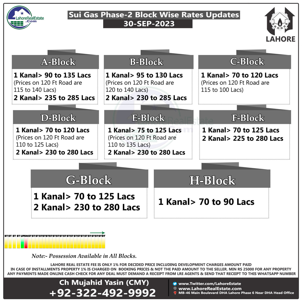 Sui Gas Phase 2 Housing Society Plot Prices Blockwise Rates 30th September 2023