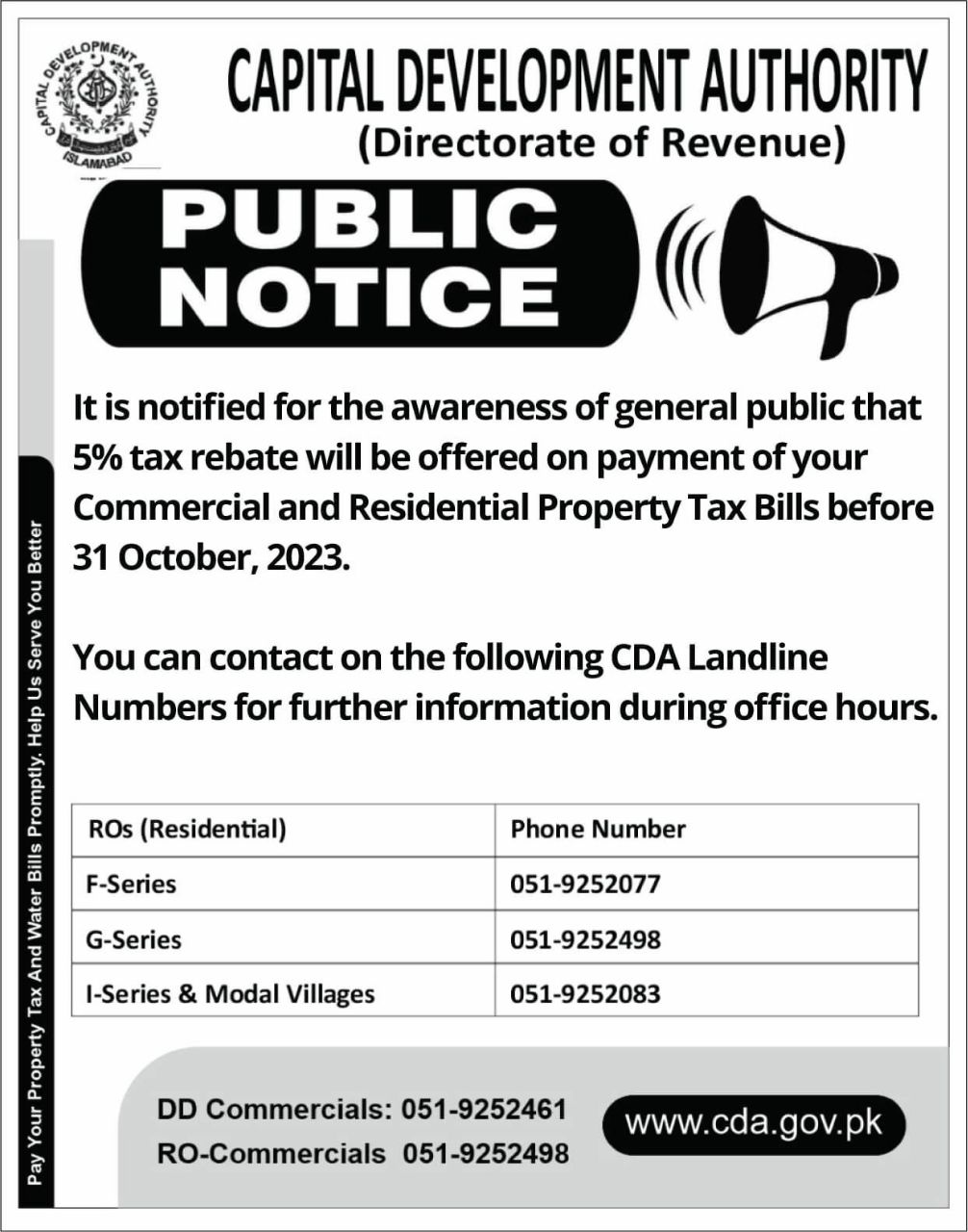 Public Notice RDA Offer 5% Tax Rebate on Payment of Commercial & Residential Property Tax Bill