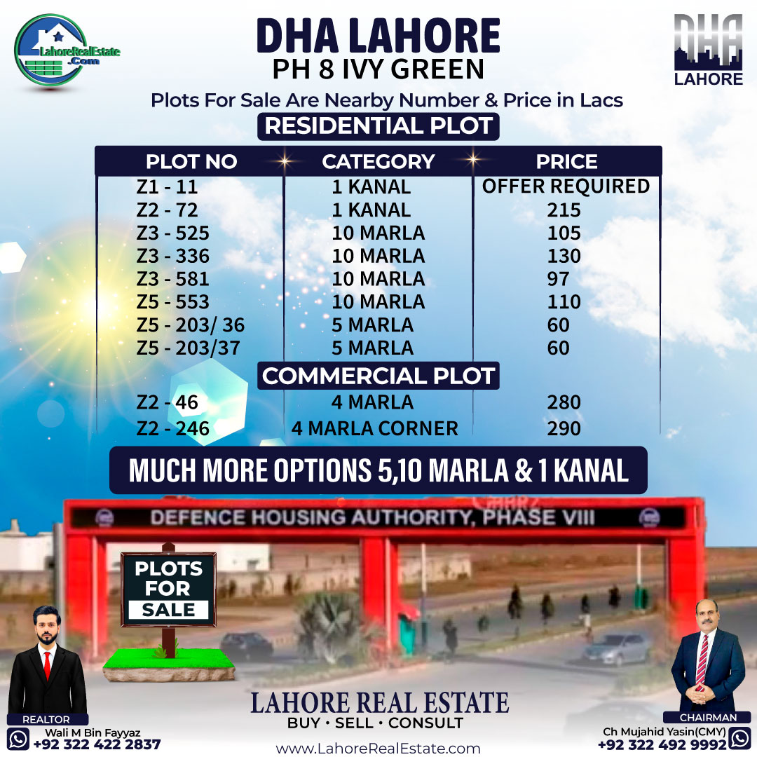DHA Lahore Phase 8 Z Block Residential Files Prices Update