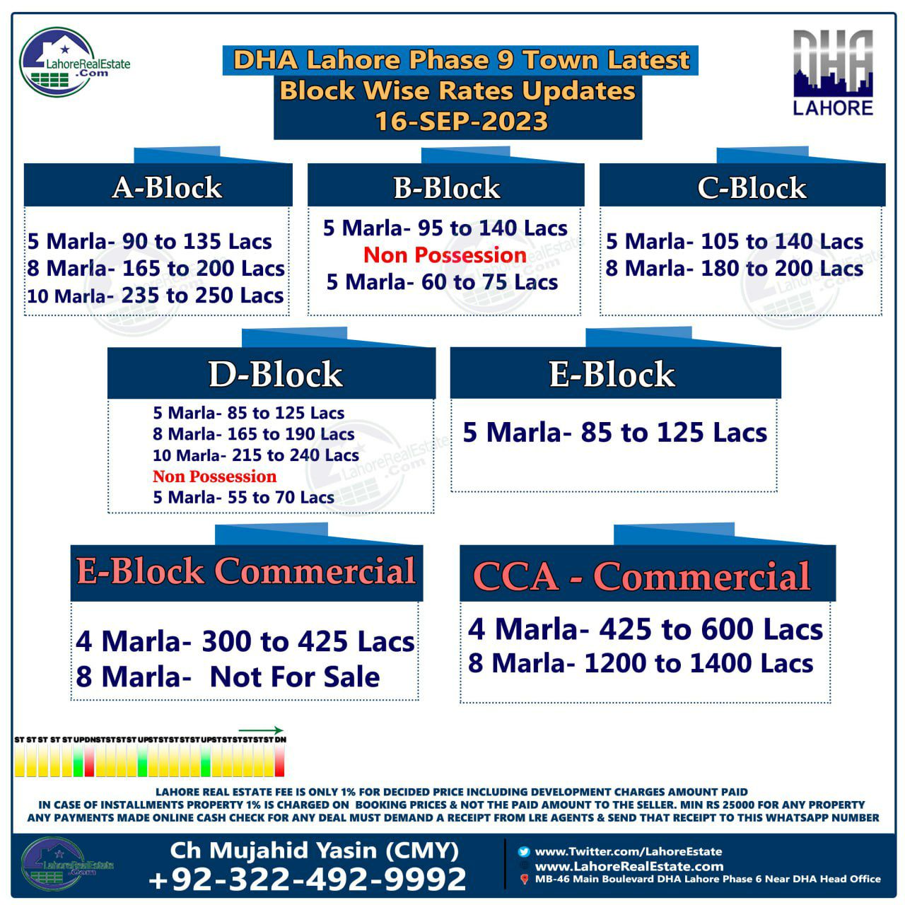 DHA Lahore Phase 9 Town Plot Prices Blockwise Rates 18th September 2023