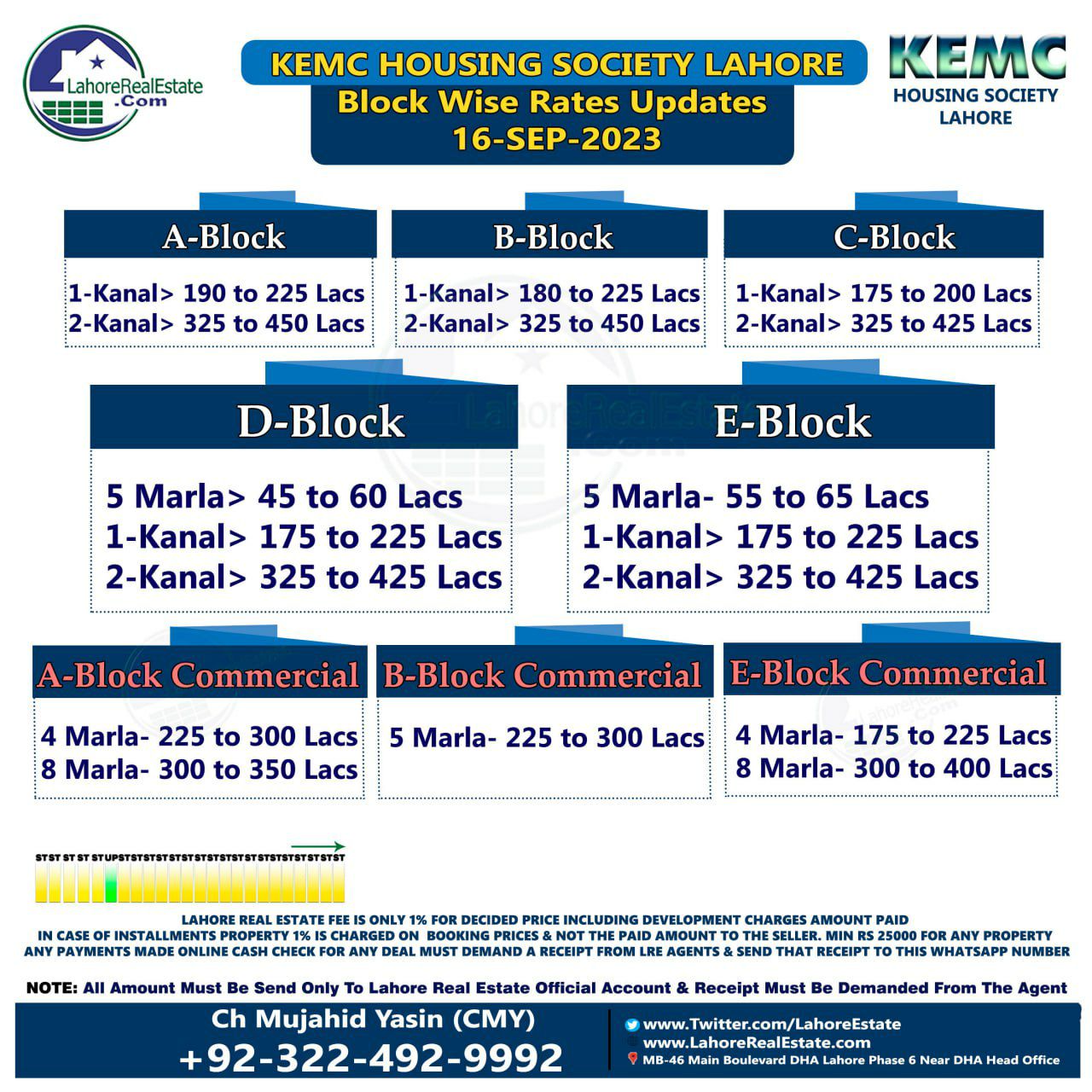 KEMC Lahore Plot Prices Blockwise Rates 18th September 2023