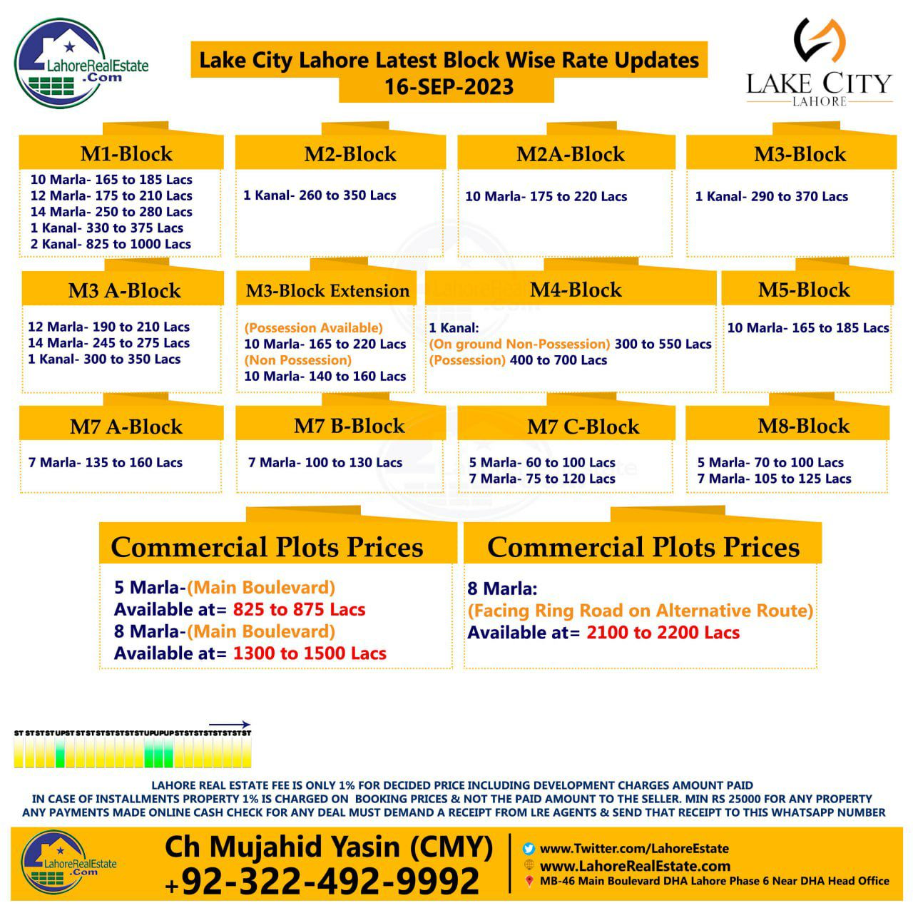 Lake City Lahore Plot Prices Blockwise Rates 18th September 2023