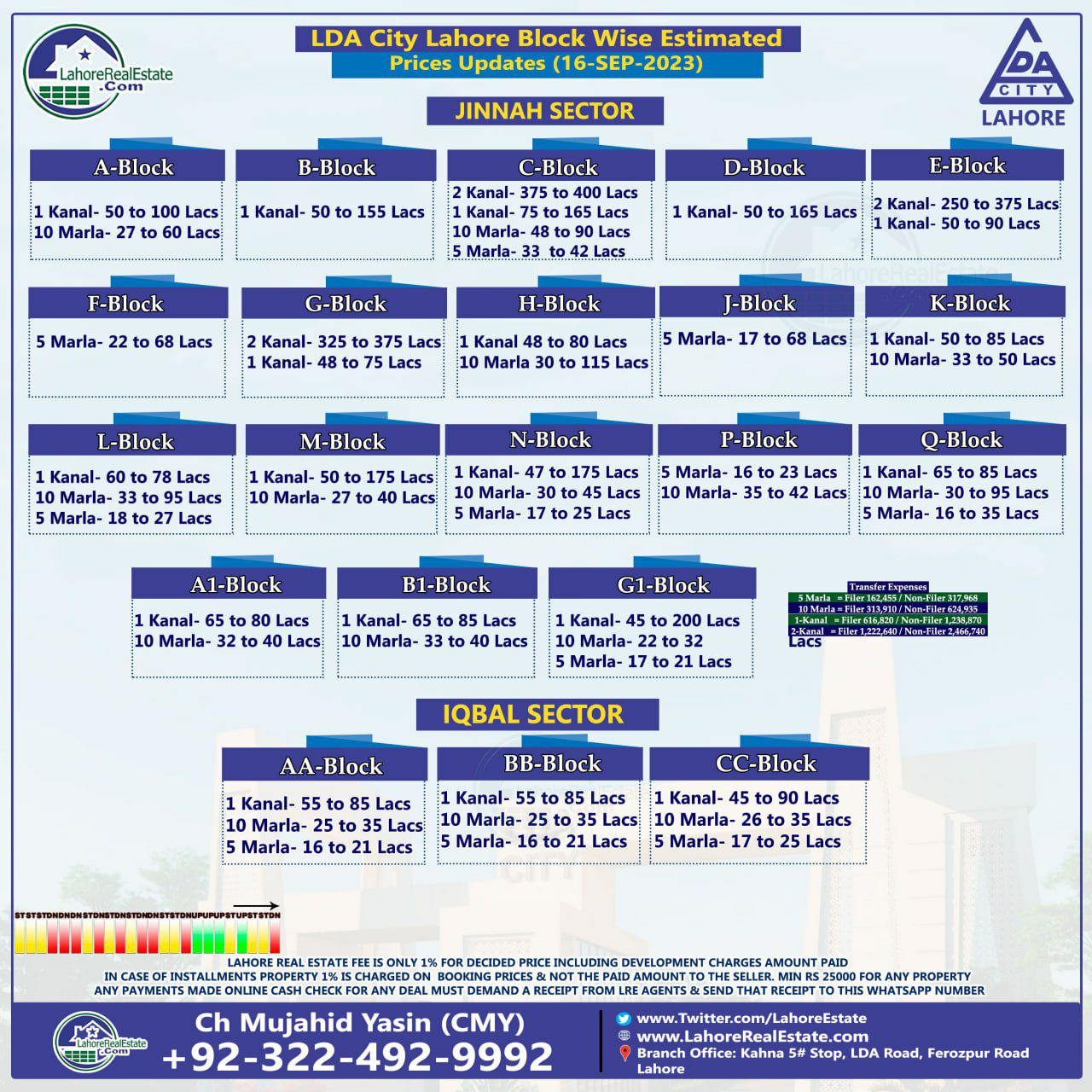 LDA City Lahore Plot Prices Blockwise Rates 18th September 2023