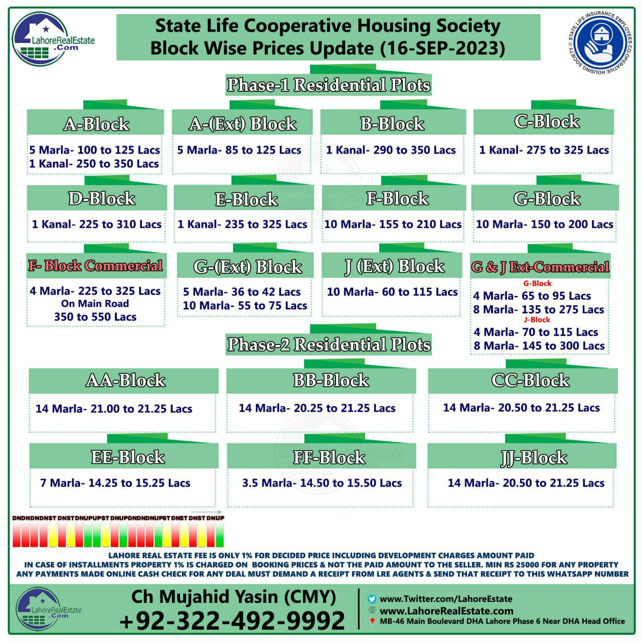 State Life Housing Scheme Lahore Plot Prices Blockwise Rates 18th September 2023