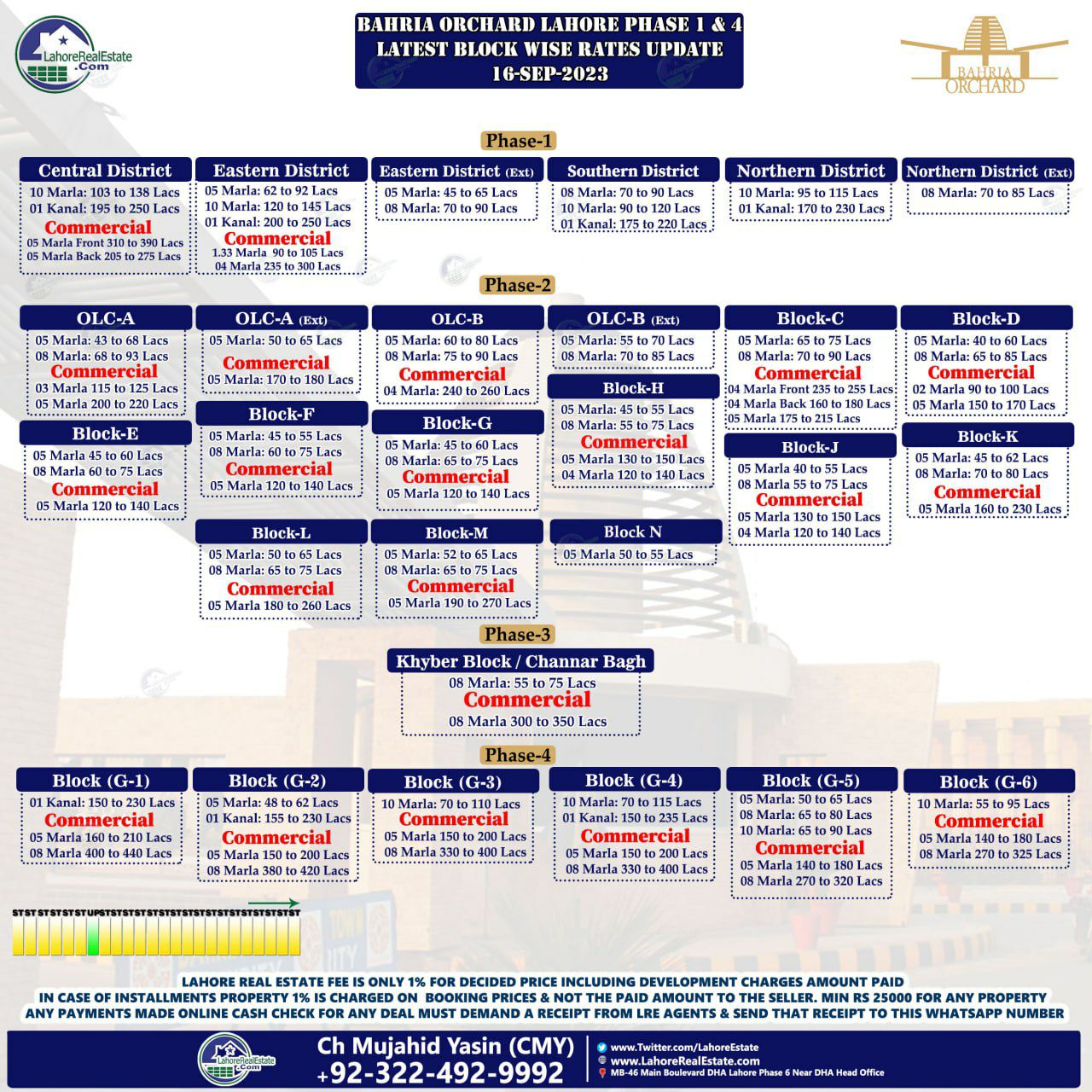 Bahria Orchard Lahore Plot Prices Blockwise Rates 18th September 2023