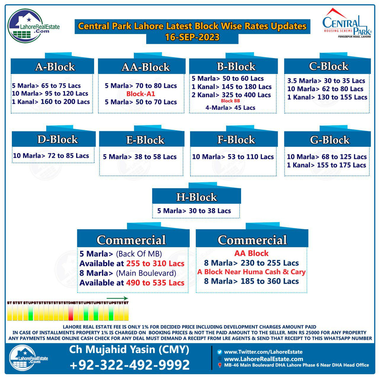 Central Park Lahore Plot Prices Blockwise Rates 18th September 2023