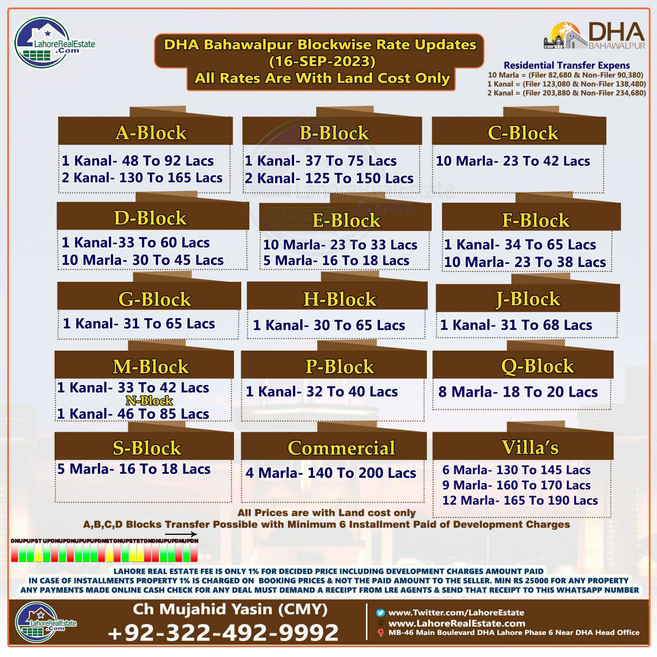 DHA Lahore Phase 6 Plot Prices Blockwise Rates 18th September 2023